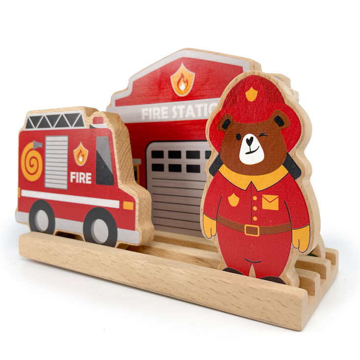 This fantastic wooden Firefighter Playset is perfect for emergency-themed play. The boxed set includes four pieces: a firefighter, a fire truck, and a fire station, all designed to sit comfortably on the floor. Open the doors to a world full of learning and empathy, immersing young minds in the realm of community helpers. Each playset is designed to encourage exploration and understanding of vital roles, from life-saving doctors to brave firefighters, and to inspire kids to discover and appreciate the important roles that make our world safer and better.